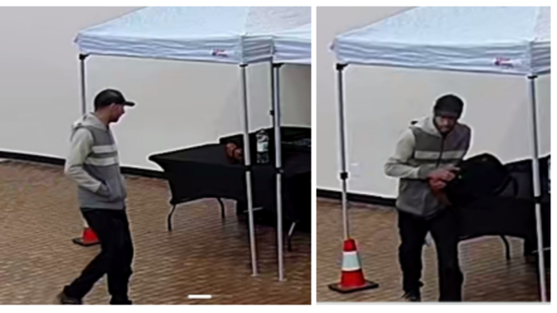 Surveillance footage captured the unknown suspect taking the backpack and leaving the area.