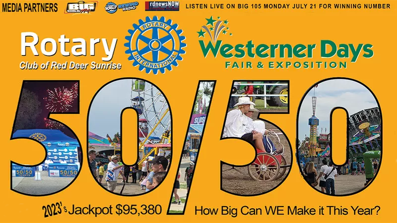 If you’re taking in the sights and sounds of Westerner Days this week, make sure to stop by the Rotary Club of Red Deer Sunrise booth and get your 50/50 ticket.