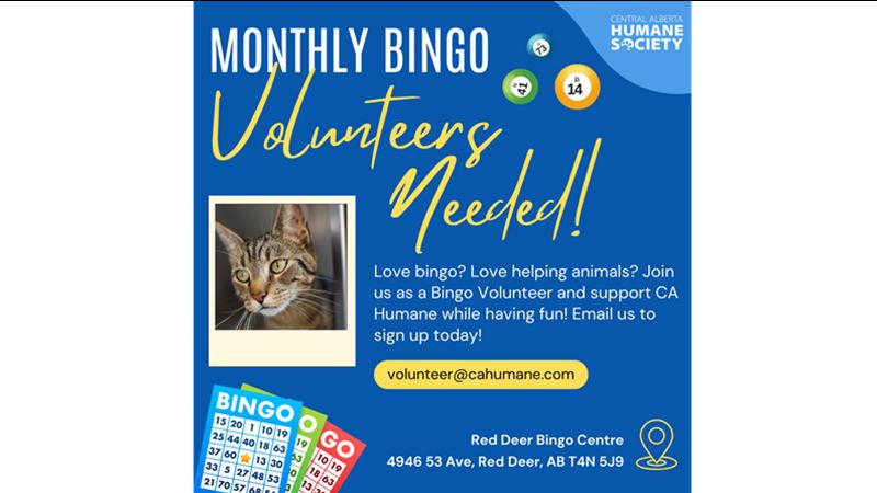 Did you know CA Humane runs a monthly bingo at the Red Deer Bingo Centre? This program is 100% volunteer-run and brings in vital funds for the animals who need us most. The best part? It only takes 4 volunteers a month to make it happen… but lately, we’ve been struggling to fill these spots.