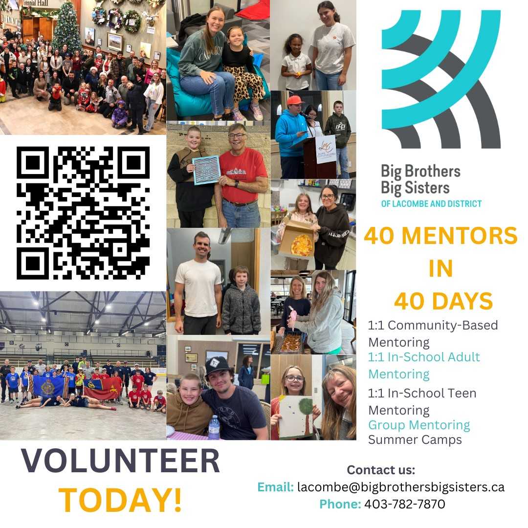 The commitment is a minimum of one hour per week spending time with your ‘little,’ with the call coming as the Lacombe branch of BBBS runs a campaign called 40 Mentors in 40 Days.