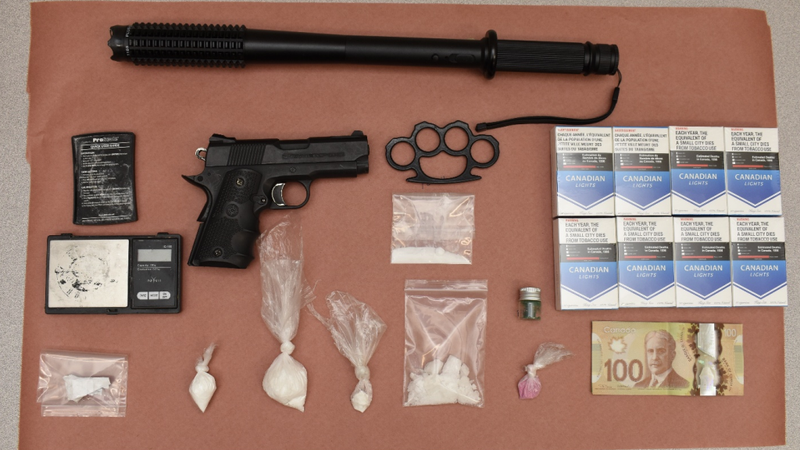 Police seized cocaine, methamphetamine, fentanyl, Canadian currency, a replica gun, and other drug trafficking-related items.