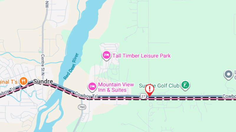 Update: Highway 27 reopened near Sundre after single vehicle collision