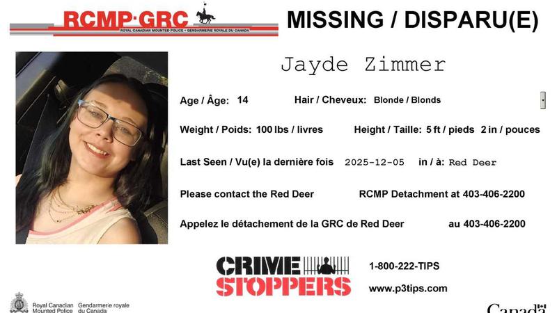 Red Deer RCMP is seeking public assistance in locating missing 14-year-old Jayde Zimmer.