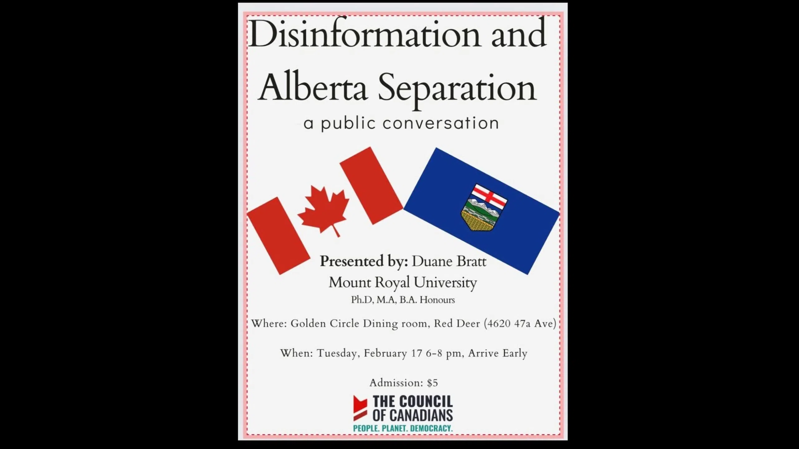 The Council of Canadians Red Deer chapter is set to host a public conversation on Disinformation and Alberta Separation this evening.