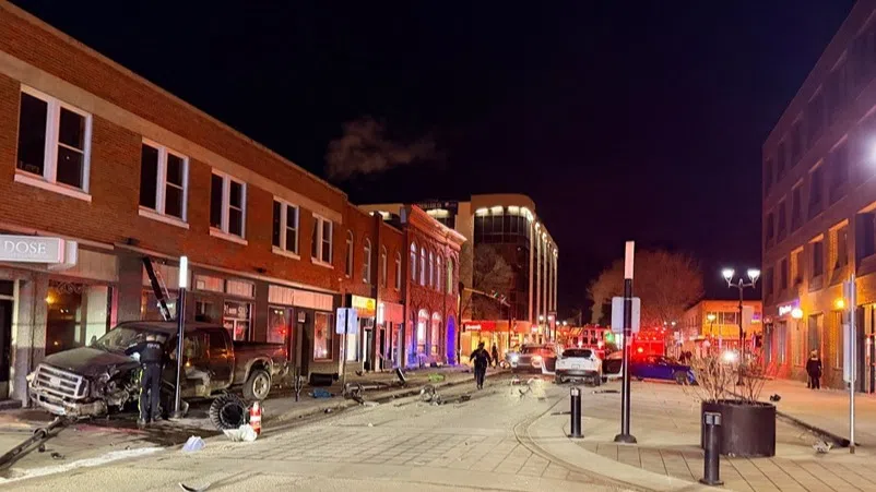 RCMP say the driver of the white SUV was transported to hospital with non-life-threatening injuries, and the driver of the truck fled from the scene on foot. Mounties say the truck drove onto the sidewalk, causing damage to a downtown building, and City of Red Deer property. Several lamp posts, garbage cans, and a fire hydrant were damaged.