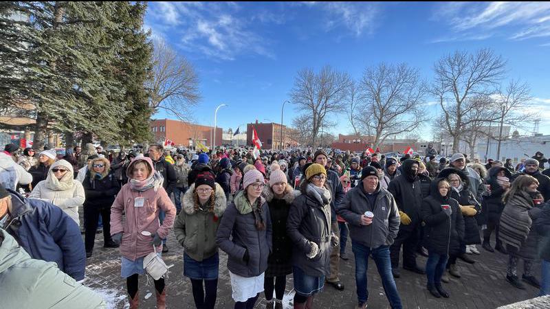 Hundreds gather to support ‘Freedom Convoy’ protesters charged with mischief