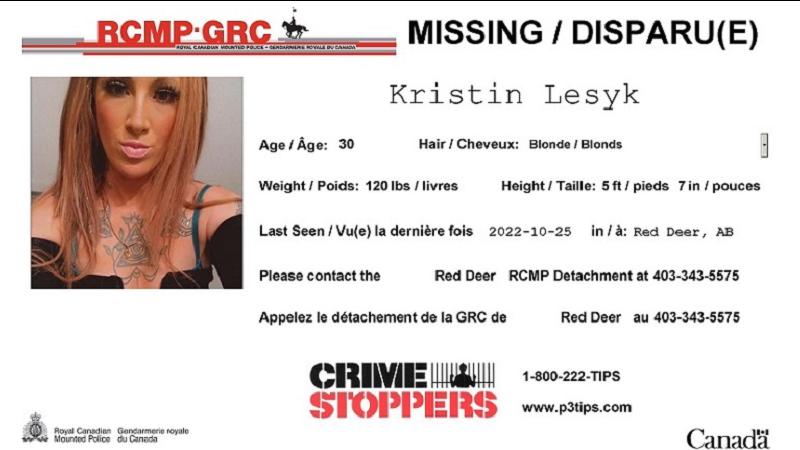 UPDATE:Nov. 2, 2022 - Red Deer RCMP can confirm that Kristin Lesyk has been located. The RCMP thank the media and the public for their assistance. ---Red Deer RCMP are asking for the public's help in ...