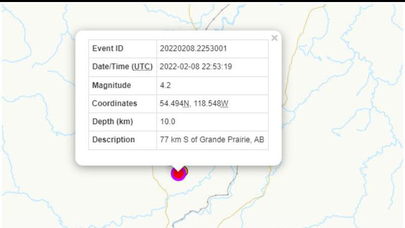 4.2 magnitude earthquake hits south of Grande Prairie