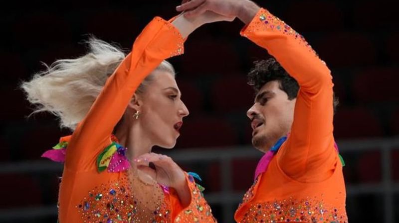 Skating to an upbeat Elton John medley, and dressed in neon orange sequined jumpsuits, Piper Gilles and Paul Poirier surely would have brought the crowd to its feet with their high-energy rhythm dance...