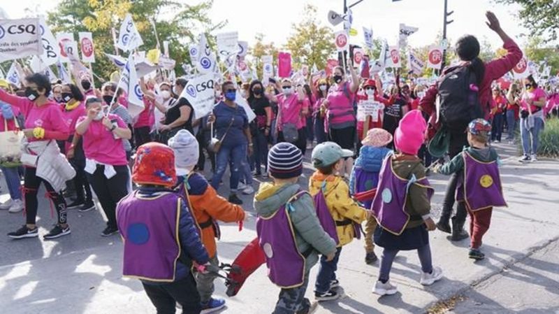 Hundreds of Quebec daycares closed by general strike as contract talks stall