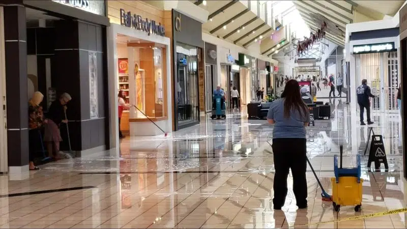 Portions of Bower Place Shopping Centre became severely flooded Thursday afternoon following a torrential downpour that hit the region. Parts of the mall which ended up being taped off were the sectio...