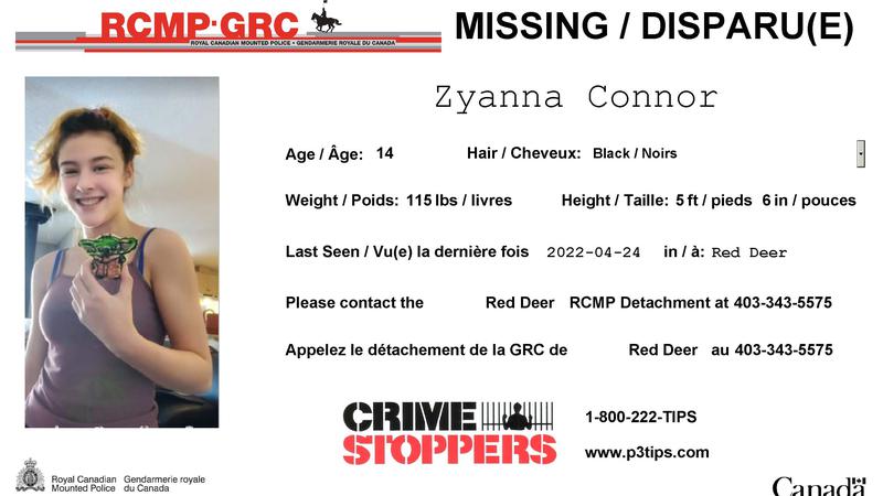 Red Deer RCMP are asking for the public's assistance to locate a missing 14-year-old girl.Zyanna Connor was last seen in Red Deer on April 24. Red Deer RCMP wish to locate Zyanna to confirm her wellbe...