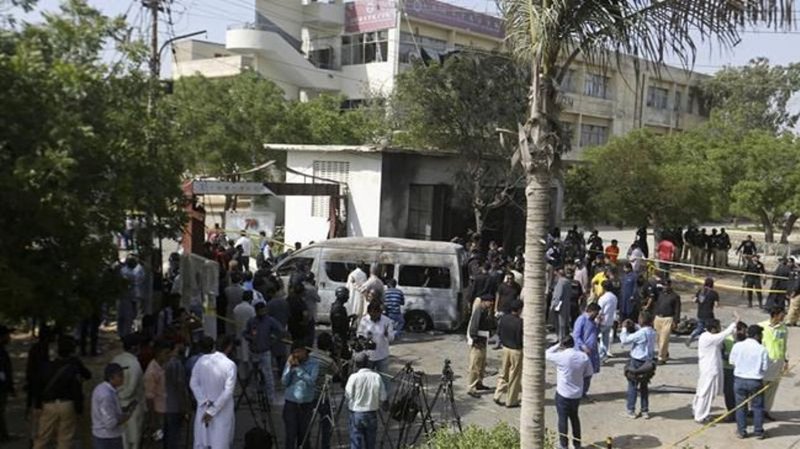 KARACHI, Pakistan (AP) - An explosion ripped through a van inside a university campus in southern Pakistan on Tuesday, killing three Chinese nationals and their Pakistani driver, officials said. A sep...