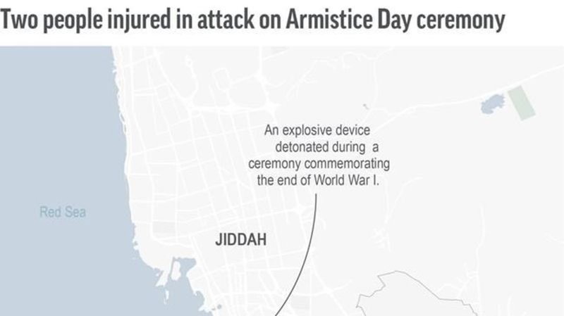 PARIS - Three people were wounded Wednesday when an improvised explosive device targeted a ceremony of French, American, British, Italian and Greek officials commemorating the end of World War I at a ...
