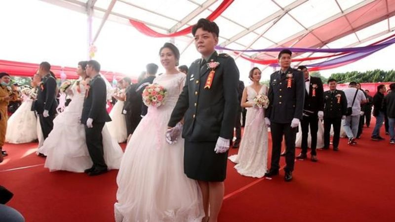 TAOYUAN, Taiwan - Two lesbian couples tied the knot in a mass wedding held by Taiwan's military on Friday in a historic celebration with their peers. Taiwan is the only place in Asia to have legalized...