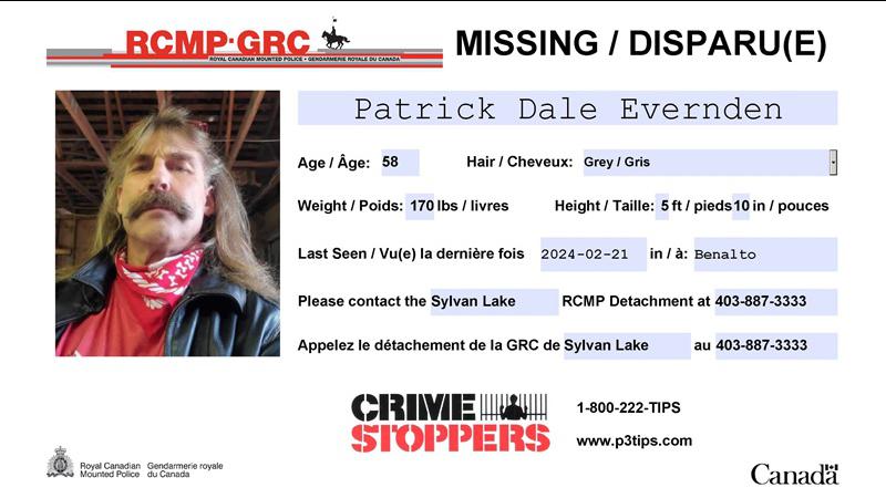 Missing: Patrick Dale Evernden, 58, of Benalto