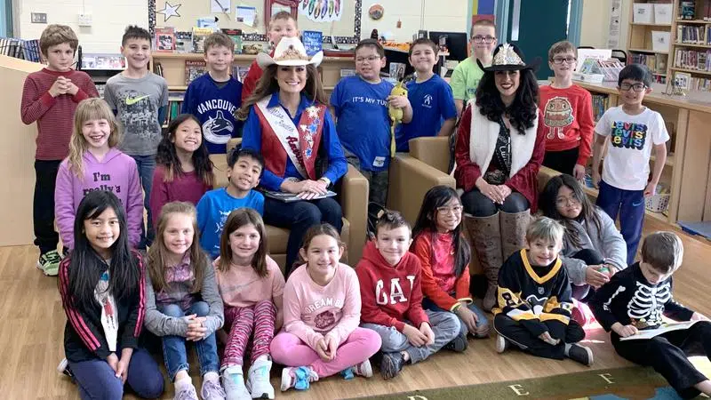 Oct 31, 2019 Taylor McNair, Miss Rodeo America and Jaden Holle, Miss Rodeo Canada with St. Teresa of Avila students (Photo submitted)