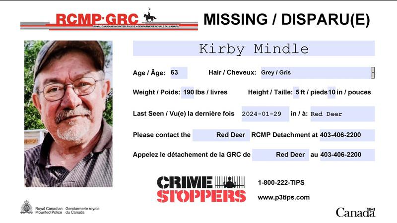 UPDATE: LOCATED, Kirby Mindle, 63, of Red Deer