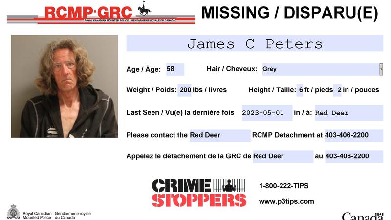 Red Deer RCMP confirm that James Peters has been located safe and unharmed. They say they would like to thank the public and the media for their assistance.