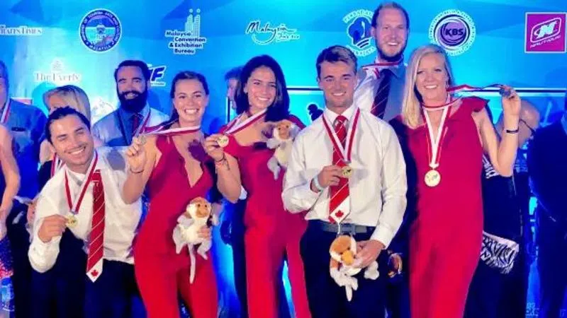 Aug 20, 2019 Dorien Llewellyn of Innisfail (third from right) celebrates an Overall Team gold medal win at the 2019 IWWF World Waterski Championships held in Malaysia Aug. 13-18.