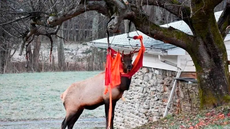 ‘Thanksgiving antics’ NC elk gets tangled up in red hammock