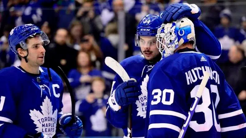 TORONTO - The Toronto Maple Leafs finally earned a victory without the services of Frederik Andersen. Michael Hutchinson made 29 saves while Zach Hyman and Auston Matthews both scored twice as To...