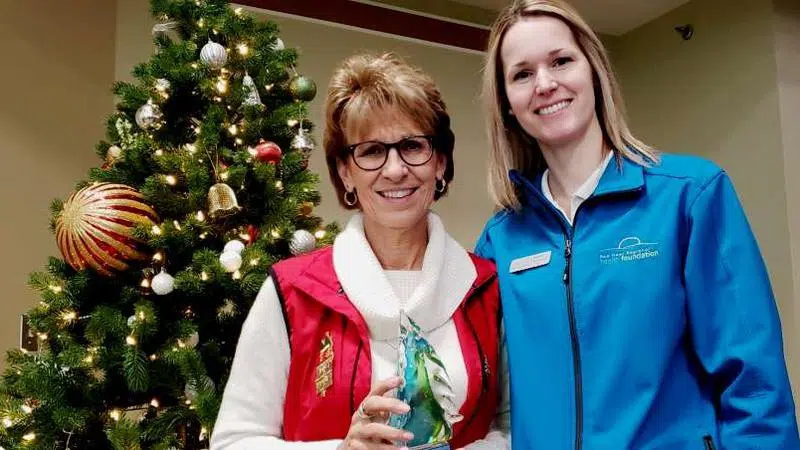 Dec 14, 2019 Milestone Award recipient Debbie Coleman (left) and Health Foundation CEO Manon Therriault at Saturday's Festival of Trees Celebration Breakfast, where it was announced the event raised enough money to purchase 19 scopes, plus one scope washer. (rdnewsNOW/Josh Hall)