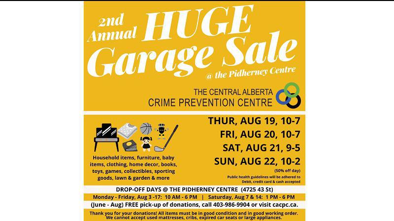 The Central Alberta Crime Prevention Centre is hosting their second annual Huge Garage Sale for Crime Prevention this week. The sale will take place starting this Thursday, Aug. 19 and will go until S...