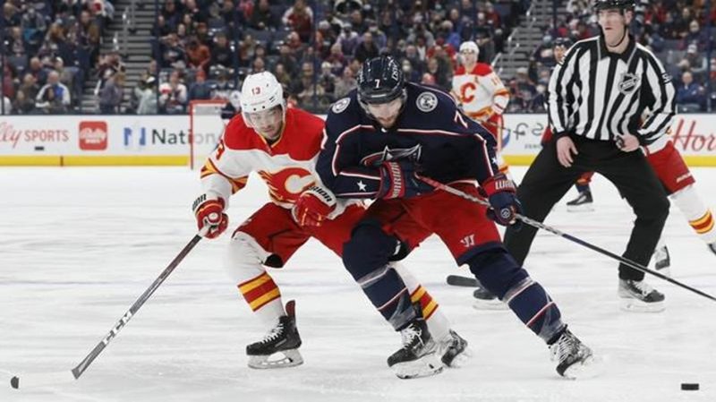 Flames fire record 62 shots on goal, rout Blue Jackets 6-0