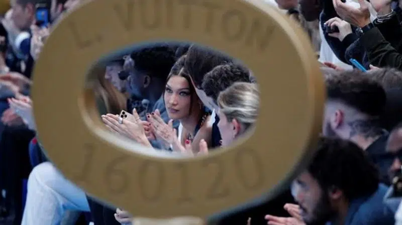 A giant beanstalk that penetrated a cloud-patterned sky-blue ceiling at Louis Vuitton's exhibition caused VIPs - including model Bella Hadid and actors Daniel Kaluuya and Ashton Sanders - marvel. And ...