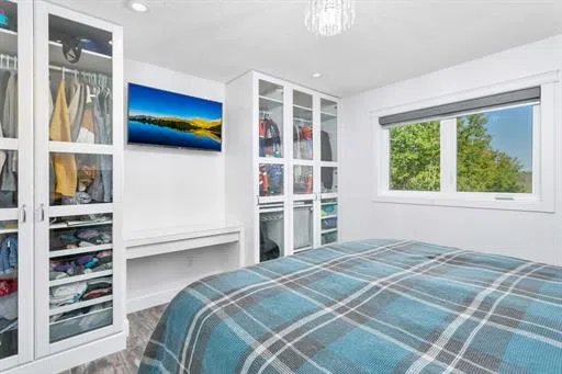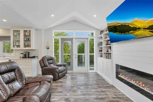 This stunning acreage is located in the Blindman Ridge subdivision, just minutes from Red Deer and all on pavement. Private, tranquil and surrounded by trees, this walk-up bungalow has been updated and modernized and is well suited for families or dream retirement home. There is a den/bedroom at the main level walk in, with a gorgeous 3 piece bathroom with tiled shower and bright and spacious family room with gas fireplace. The Laundry area and mudroom offers tons of space and storage closets with access to the backyard and to both the heated attached 21×20 garage and the 36×26 heated shop c/w 10′ ceilings and 220 power. Upstairs is an open concept and very bright living space with vaulted ceilings and built in cabinetry in living room There is a fantastic kitchen space with quartz counter tops, tons of cabinets and high end s/s appliances. Windows surround the dining area allowing beautiful views to the outdoor space. There are 3 bedrooms on the main floor. The primary is a good size with built in wardrobes offering tons of storage & a beautiful 4 piece ensuite with tiled shower. 2 additional bedrooms share the spacious 4 piece bathroom with soaker tub. The deck from the living room has been completed redone and there is an expansive lower level deck in the backyard with hot tub and lots of room for outdoor furniture. The surrounding outdoor space has a fenced area with dog kennel and there is a play center and trampoline for the kids. There is ample space for additional outbuildings & RV parking. This property has been well cared for and it shows.