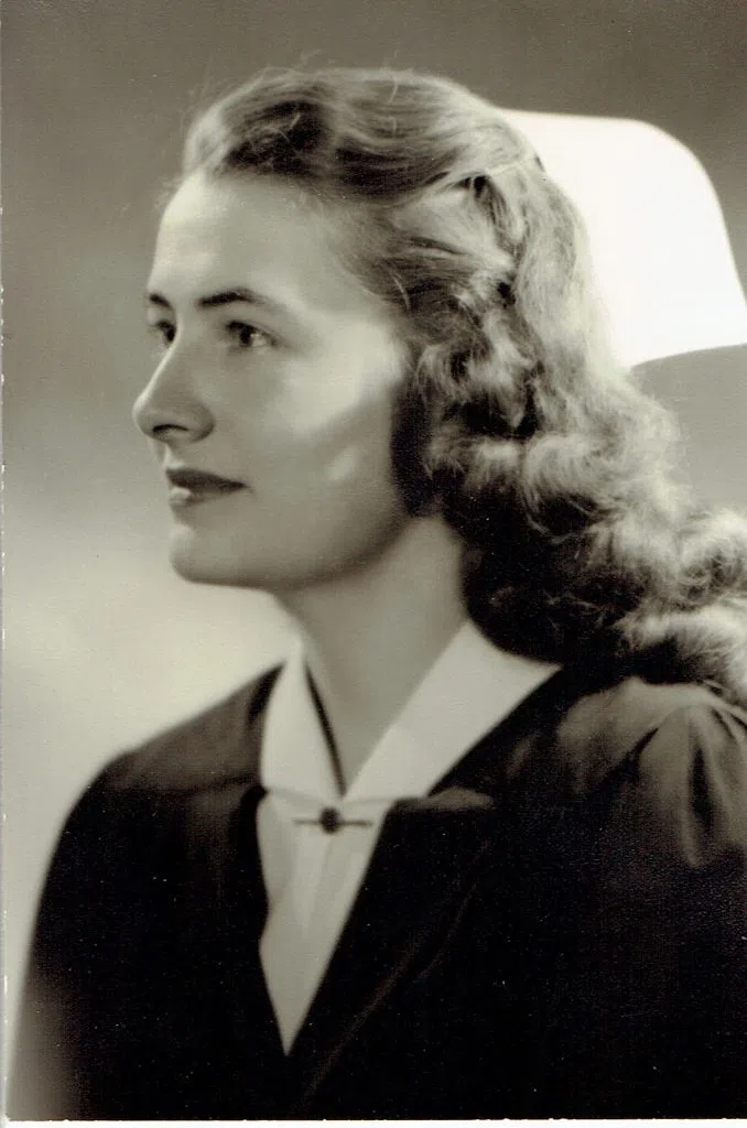 Jean was born in 1926 and raised in a large, loving family in the village of Aetna in southern Alberta. The second child of 9, and the oldest daughter, she said the highest praise a girl could receive in those days was that she was a great help to her mother. None-the-less Jean was the first student from her school to complete high school and went on to become a proud graduate of the University of Alberta School of Nursing.