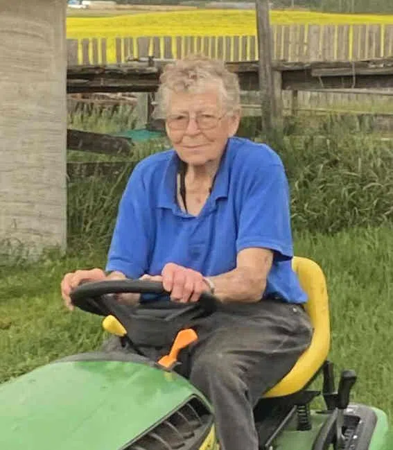 After Dad’s passing in 1985, Mom moved six miles east of Blackfalds to an acreage she purchased with Neil Bawtinheimer. There, she raised cows and goats (all named after her children), horses, which she was especially fond of, chickens, sheep, and potbellied pigs, as well as her beloved dogs, Maggie, Jesse, Muffin, and Pal.